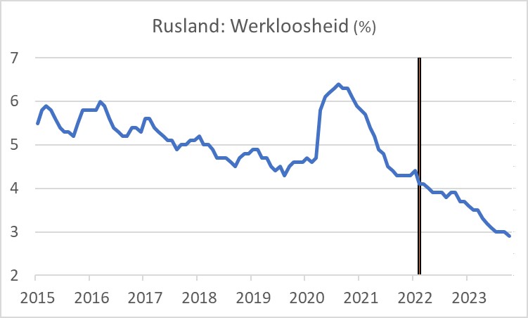 De werkloosheid is laag en dalend. De arbeidsmarkt is dus krap in Rusland. Helaas heeft dat mede te maken met het aantal mensen dat onder de wapenen wordt geroepen en wellicht ook met de mensen die het land verlaten om uit het leger te blijven.