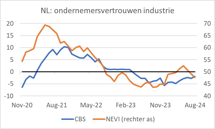 Overigens rapporteerde het CBS eerder dat het producentenvertrouwen in de industrie in augustus juist wat minder negatief zou zijn geworden. De enquête van de NEVI is veel uitgebreider dan die van het CBS. Ik hecht er daarom meer waarde aan.