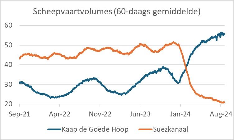 De industrie heeft momenteel ook te maken met verstoringen in de aanvoer. Door de onrust in de Rode Zee wordt er massaal 'omgevaren'. Dat verlengt levertijden. Het is onduidelijk in hoeverre dit de productie tijdelijk beperkt.