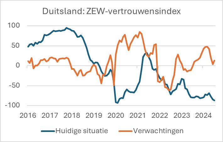 Analisten zijn in oktober iets positiever geworden over de vooruitzichten voor de economie in de eurozone en ook voor die van Duitsland. De ZEW-index voor de vooruitzichten voor Duitsland steeg van 3,6 in september tot 13,1 in oktober. Voor de eurozone als geheel steeg de index van 9,3 naar 20,1. Het is niet geheel duidelijk waaraan deze verbetering te danken is. Het ZEW-instituut spreekt over de lage inflatie, de renteverlagingen en ook de maatregelen die de Chinese regering en centrale bank hebben genomen om hun economie aan te zwengelen.