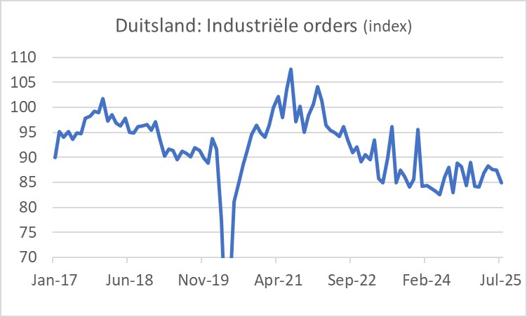 De Duitse industrie boekte in juli veel minder orders dan in juni. Dat blijft een probleem voor Duitsland en daarmee voor de hele eurozone, inclusief ons.