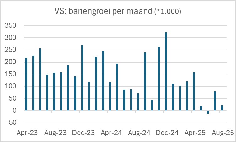 De groei in de Amerikaanse economie lijkt min of meer tot stilstand gekomen. De banengroei in augustus viel opnieuw tegen. De Fed zal de rente over anderhalve week ongetwijfeld verlagen. Stephen Miran, de belangrijkste economische adviseur van Trump zal de komende week worden benoemd tot Fed-bestuurder, maar hij zal die rol slechts een paar maanden vervullen. Hij zal nagenoeg zeker in elke beleidsvergadering die hij zal bijwonen, aandringen op renteverlaging