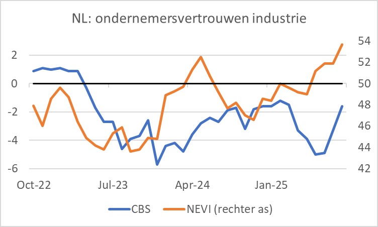 Het blijft een beetje aanmodderen. De Nederlandse industrie is een lichtpuntje aangezien het vertrouwen van ondernemers in die sector duidelijk verbetert. Aan de andere kant neemt de inflatie toe. Hoogst vervelend.