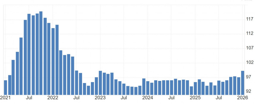 Het beeld van de Europese conjunctuur is niet volledig eenduidig, maar het lijkt er toch wel op dat de economische groei de komende tijd aan vaart zal winnen. Dat blijkt uit voorlopende indicatoren. Neem de index van het 'economisch sentiment' die door de Europese Commissie wordt samengesteld. Deze index steeg van 97,2 in december tot 99,4 in januari. Daarmee bereikte deze index de hoogste stand sinds januari 2023. De verbetering was breed gedragen.