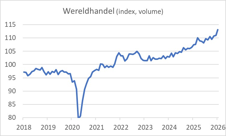 Misschien is die verbetering van de inkoopmanagersindex in de industrie nog een nagalm van de verbeterende industriële trend mondiaal. Ons CPB publiceert maandelijkse cijfers over het volume van de wereldhandel, die door economen wereldwijd worden gevolgd. Dat is een ingewikkelde optelsom van wat nationale statistische bureaus publiceren. De cijfers zijn daarom wat mij betreft omgeven met een ruime onzekerheidsmarge, maar toch. In januari was het volume van de wereldhandel 2,0% groter dan in december en ruim 5% groter dan een jaar eerder. Dat laatste cijfer is mogelijk wat geflatteerd doordat 'Lunar New Year' dit jaar erg laat viel. Daardoor had januari in landen waar het Chinees Nieuwjaar uitgebreid wordt gevierd meer werkdagen dan vorig jaar. In februari zou dat moeten omkeren. Het CPB merkt op dat vooral de groei van de handel in Azië sterk was, wat duidt op het positieve effect van de verschoven vrije dagen. Ook meldt het CPB dat Aziatische landen in toenemende mate met elkaar handel drijven.