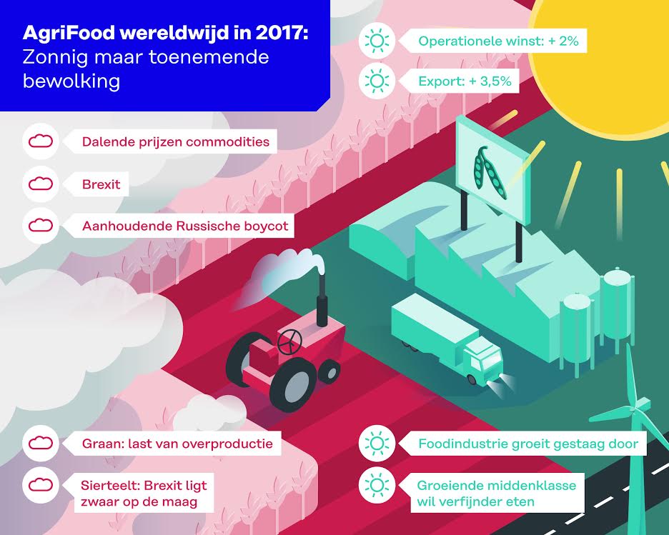 Is het glas half vol of half leeg voor de agrofoodsector? Winst en export nemen wereldwijd toe. Echter, de prijzen van agrarische commodities, de brexit en de aanhoudende Russische boycot bederven de hosanna-sfeer. Dat neemt niet weg dat wereldwijde agrofoodsector ook dit jaar nog prima presteert. Dat blijkt uit de risicoanalyse die wij maakten voor de agrofoodsector wereldwijd en in Nederland.