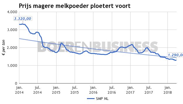 Dit gebeurt nu bij magere melkpoeder. Uit voorraadcijfers blijkt dat er aan het einde van 2017 zo’n 378.000 ton magere melkpoeder in de 'Europese pakhuizen' lag; het hoogste volume sinds 1991. Ter illustratie: dit is krap 20% van het jaarlijks verhandelde volume magere melkpoeder in Europa.