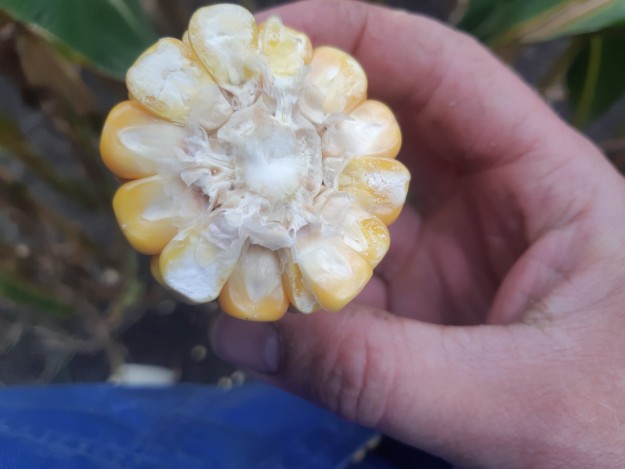 Was eerst de kolf hard aan het afrijpen en bleef de plant wat groen, nu zie je dat ook de plant flink begint af te rijpen. Jan Roothaert, productmanager veehouderij bij Limagrain: "Het is goed dat de maïstelers nog uitstel hebben gehad, zodat de maïs volop kan afrijpen om zijn voederwaarde te pakken."