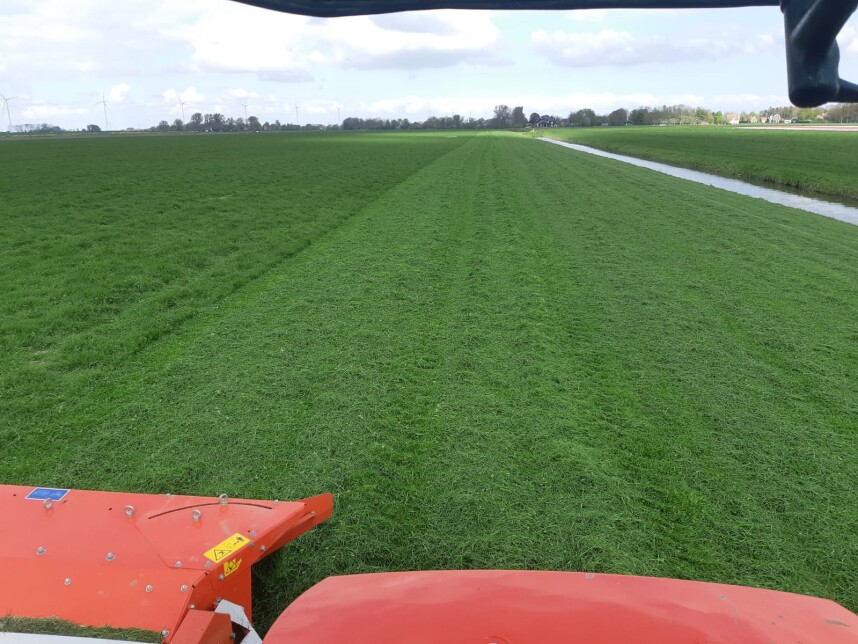 Op 26 april in de ochtend doet melkveehouder Frank Rooker uit Aartswoud (NH) nog een ronde met de grasland hoogtemeter door zijn percelen. Rooker schat een grasopbrengst variërend van 3.000 en 4.000 kilo droge stof per hectare. Daarop besluit hij om aan het einde van de dag alles er af te maaien.