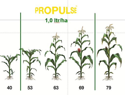 Bij Roel Assies in Zeewolde (Flevoland) is er zaterdag 23 juli door de loonwerker 5 hectare maïs bespoten met Propulse. Door de grote rotatie van 1 op 8 welke Assies voor elkaar weet te krijgen op het areaal is de ziektedruk niet heel hoog. Toch is Assies benieuwd naar welke toevoeging Propulse heeft op het maïsgewas en of het mogelijk extra opbrengsten gaat opleveren. Assies geeft aan dat het maïsgewas minimale schade ondervindt als de spuit er doorheen rijdt.