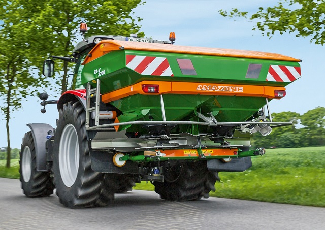Amazone introduceerde vorige maand veel nieuwe of vernieuwde machines. Daaronder ook een nieuwe kunstmeststrooier: De ZA-V. Deze heeft een maximale werkbreedte van 36 meter. Bijzonder is dat hierbij de uitstroomopening is gekoppeld aan de rijsnelheid. Ga je harder rijden, dan zal de machine zijn dosering gelijk houden. Ook de roerinrichting is gekoppeld. Staat de trekker stil, dan stopt de roerder en gaat de doseerschuif dicht. Dit voorkomt dat kunstmest verpulverd wordt.