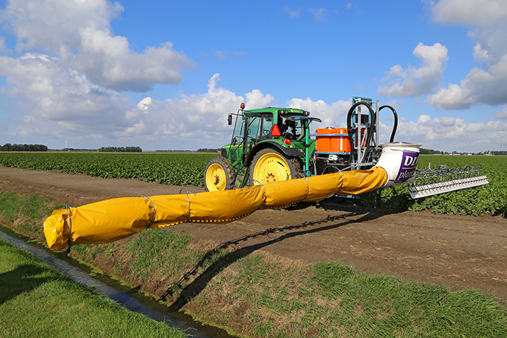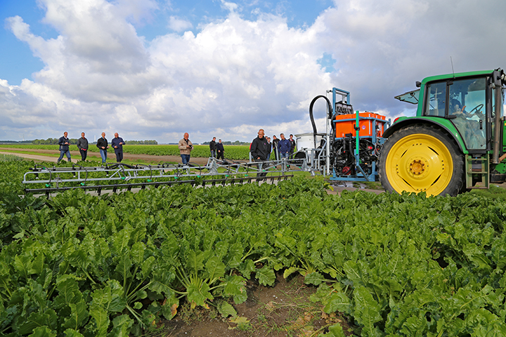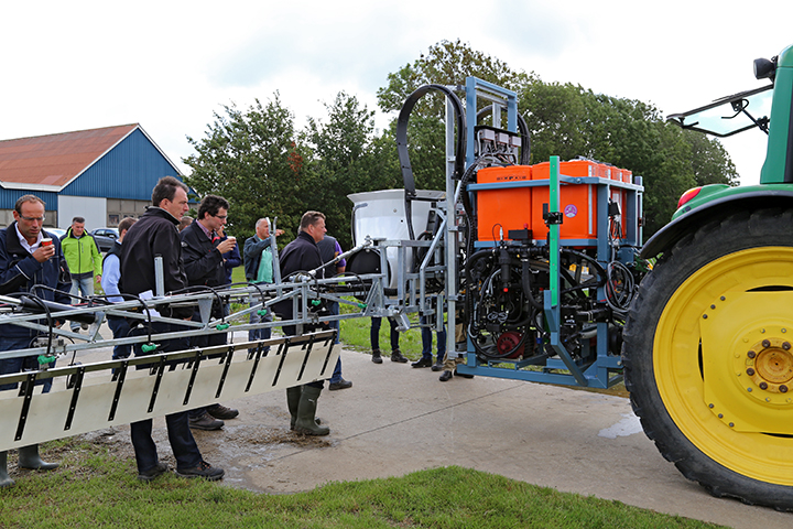 Dinsdag 25 augustus stelde DLV Plant hun gloednieuwe spuitmachine voor in Nagele aan vertegenwoordigers van machinefabrikanten, middelenfabrikanten en doppenproducenten. Ook mensen van het waterschap waren aanwezig. Het voorste gedeelte is speciaal voor proefvelden ontwikkeld, zodat met kleine volumes kan worden gewerkt.