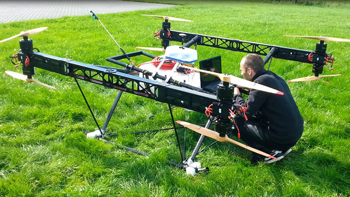 Tenminste, als het aan de initiatiefnemers van ManDrone ligt. Hun mega drone kan – volledig autonoom – alle gewassen op het bedrijf bespuiten.