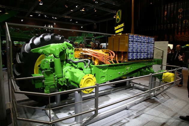 John Deere lanceerde in 2016 Sesam; een standaardtrekker die is uitgerust met een 130 kW (177 pk) accupakket. Het bijzondere is dat deze accu binnen de standaard dimensies van het voertuig past. "Met de huidige accutechnologie gaat deze accu ongeveer 4 uur mee", legt product ingenieur Philipp Lehmann uit tegen OEM Off-Highway. "Vervolgens laad je hem in 3 uur tijd op, wat in de praktijk tot problemen leidt."