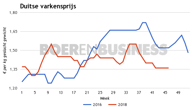 Duitse slachterijen zijn niet tot prijsverhogingen te bewegen, want onder druk van Vion en Tönnies bleef de Duitse varkensprijs (de VEZG-notering) woensdagmiddag 7 november staan op €1,36 per kilo. Aan het begin van de week werd nog gerekend op een verhoging tot misschien wel €0,05.