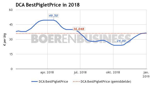 Ook in de laatste week van 2018 zet de DCA BestPigletPrice een verhoging weg.