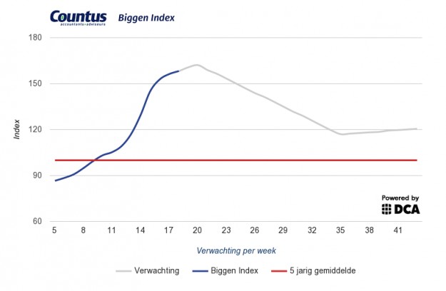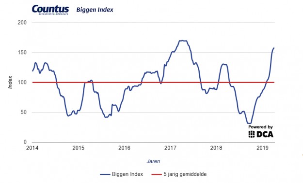 De opmars die de biggenprijzen hebben laten zien, is bijna onbevattelijk. Zo is de DCA BestPigletPrice in de afgelopen maanden bijna 3 keer over de kop gegaan tot €57,50 per big. Deze prijsopleving heeft uiteraard grote gevolgen voor Countus Biggenindex, want die laat daardoor al langere tijd een stijging zien.