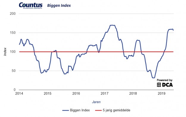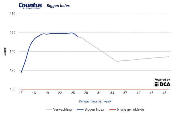 Door de daling in de biggenprijzen laat ook de Countus Biggenindex in de eerste week van de maand juli een neerwaartse beweging zien. De Index daalt namelijk met 3,6 punten tot 155,9 punten. Daarbij wijst de prognose van de Biggenindex uit dat het rendement op de korte termijn niet zal verbeteren.