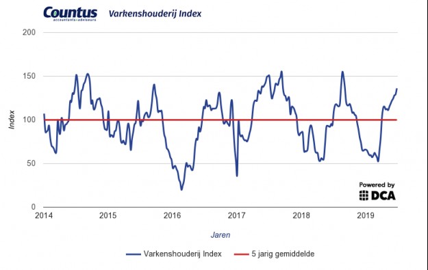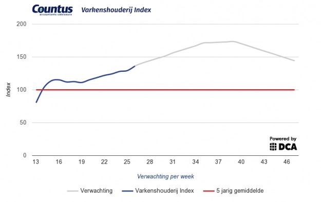 Het rendement van de varkenshouderij laat in de eerste week van de maand juli een duidelijke splitsing zien: daar waar de Countus Biggenindex in week 26 een daling heeft ingezet, laat de Countus Vleesvarkensindex juist zien dat het de weg naar boven heeft gevonden.