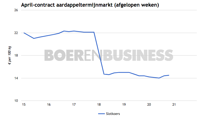 Na de jump van de aardappelmarkt stabiliseert de markt nu enigszins. Dat zegt DCA Marktexpert Edwin Burgers. Is de 30 euro uit beeld? Wilt u op de hoogte blijven van de actuele trends en noteringen op de aardappelmarkt? Bezoek dan onze databank, exclusief voor abonnees van Boerenbusiness.nl.