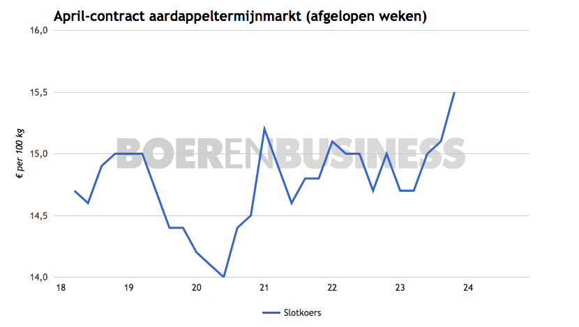 Het weer is een dominante factor op de aardappelmarkt. De groei van de aardappelen is voor een groot deel afhankelijk van de neerslag, zegt DCA marktexpert Kees Maas. Gaat de markt door de grens van 17 euro? Wilt u op de hoogte blijven van de actuele trends en noteringen op de aardappelmarkt? Bezoek dan onze databank, exclusief voor abonnees van Boerenbusiness.nl.