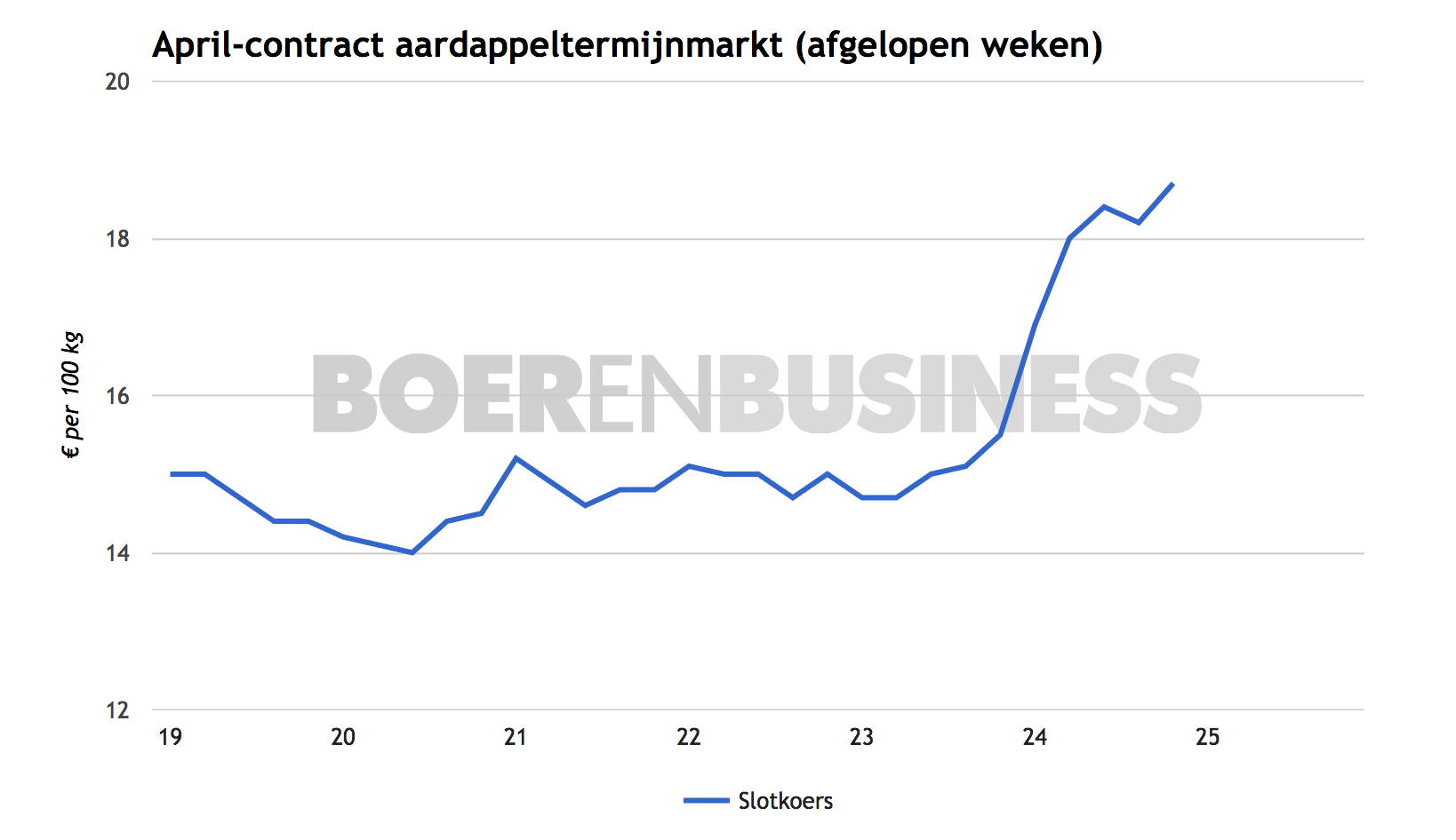 Komt er wel of geen regen op korte termijn? Dat is waar aardappeltelers in Nederland, maar ook zeker in België en Frankrijk zich deze dagen vooral mee bezig houden. De droogte begint steeds nijpender te worden en daar reageert ook de termijnmarkt op. Wilt u op de hoogte blijven van de actuele trends en noteringen op de aardappelmarkt? Bezoek dan onze databank, exclusief voor abonnees van Boerenbusiness.nl.