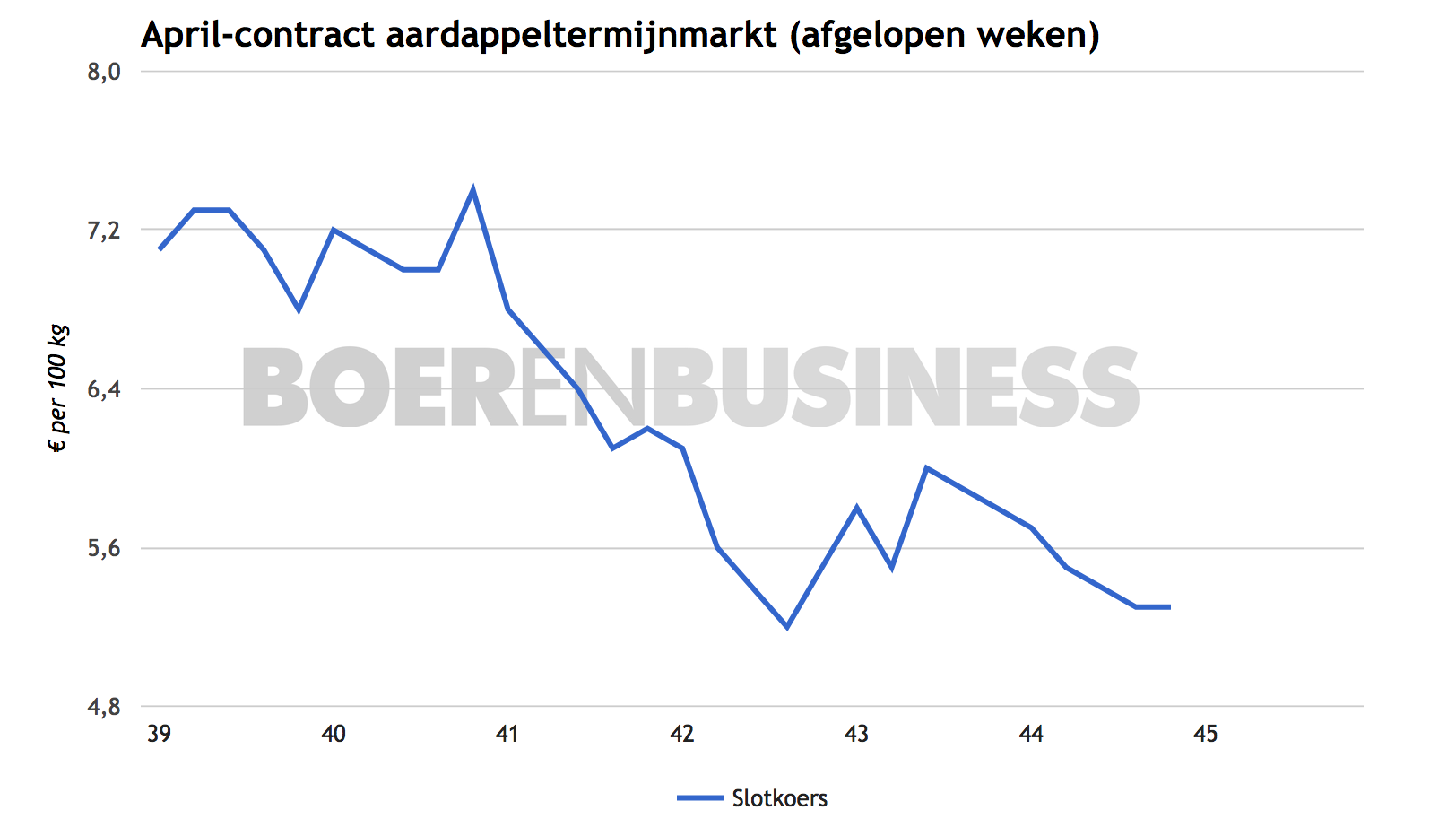De aardappeloogst is zo goed als afgerond, zegt DCA-marktexpert Edwin Burgers. De laatste loodjes zijn voor sommigen heel zwaar en ook de kwaliteit speelt een belangrijke rol. Wilt u op de hoogte blijven van de actuele trends en noteringen op de aardappelmarkt? Bezoek dan onze databank, exclusief voor abonnees van Boerenbusiness.nl.