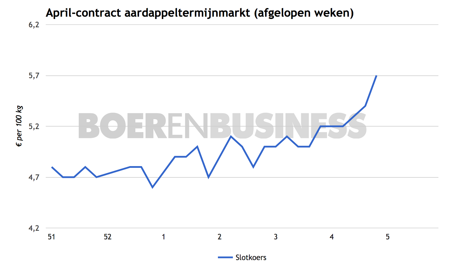 De aardappeltermijnmarkt weet de kleine opleving ook deze week vast te houden, zegt DCA-marktexpert Edwin Burgers. Dit en meer over de aardappelmarkt hoort u in deze video-update. Wilt u op de hoogte blijven van de actuele trends en noteringen op de aardappelmarkt? Bezoek dan onze databank, exclusief voor abonnees van Boerenbusiness.nl.